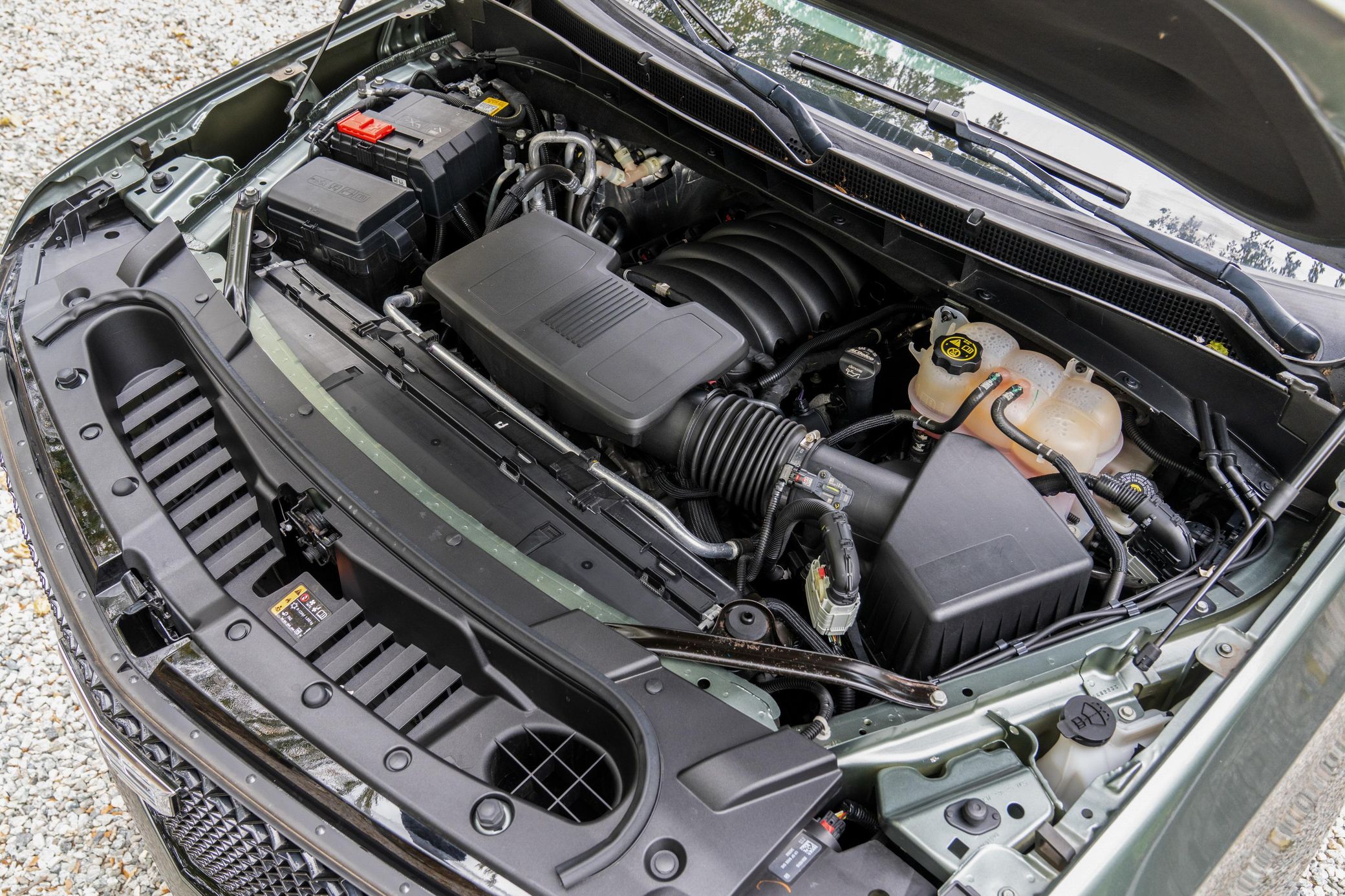 Power comes from a 6.2-liter V8, rated at 420 horsepower and 460 lb-ft of torque. Output is sent to the rear or the four wheels via a 10-speed automatic transmission and a 2-speed transfer case.