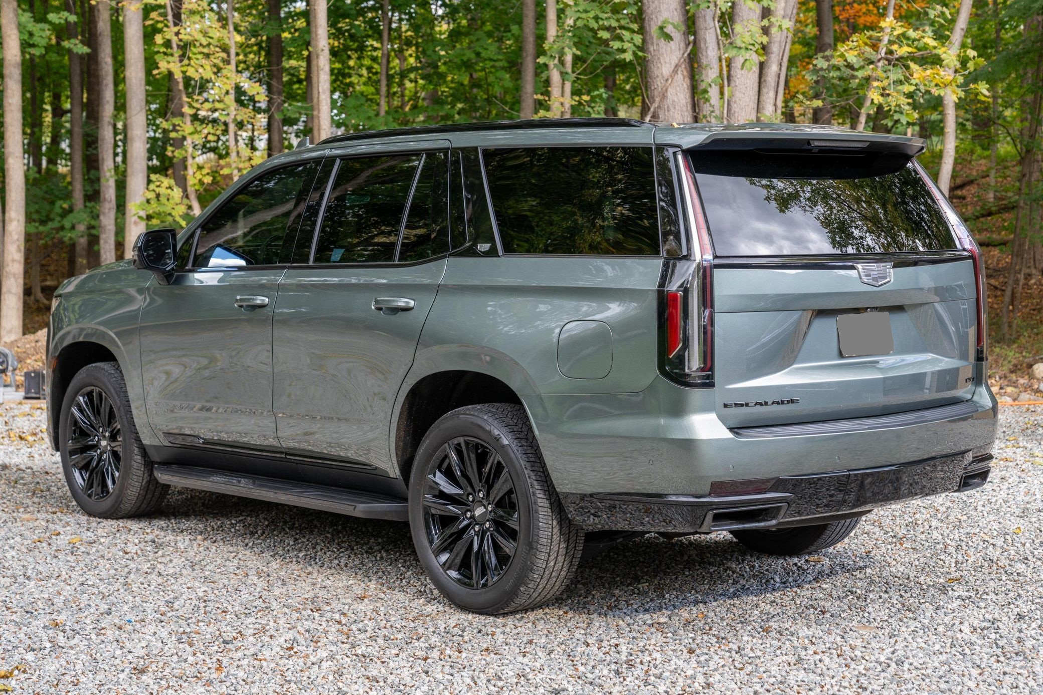 THIS... is a 2023 Cadillac Escalade 4WD Sport Platinum, finished in Dark Emerald Metallic with a Whisper Beige interior.